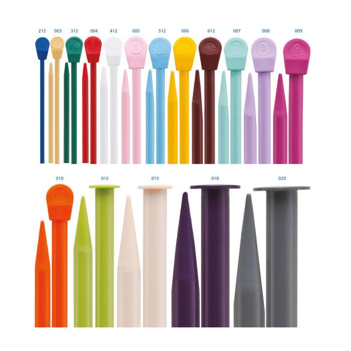 Com 25cm (curta) ou 37cm (longa) de comprimento, as agulhas possuem uma variedade de tamanhos que vão de 2,5mm à 20mm. A leveza das agulhas, devido a sua fabricação em plástico, facilita o processo de criação e traz resultados incríveis aos projetos artesanais, enquanto o comprimento, é ideal para projetos que não necessitam de muitos pontos.