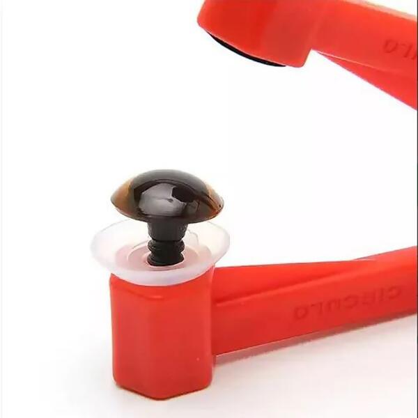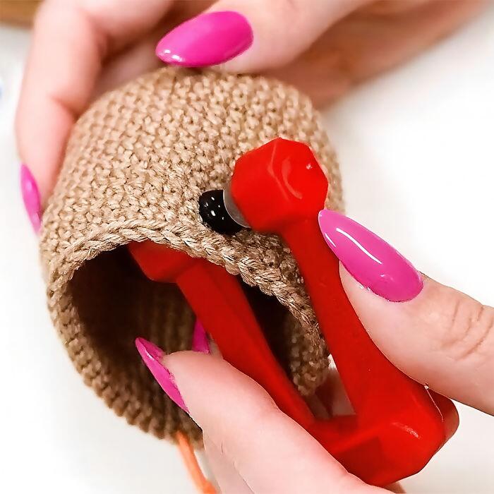 A Círculo, marca de produtos para artesanato, oferece um aplicador de olhos e focinhos para amigurumi. O acessório foi desenvolvido para facilitar a colocação dos olhos e focinhos de segurança, que possuem travas, nos amigurumis.