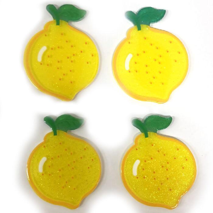 Aplique em formato de limão, ideal para artesanatos, customização de acessórios infantis, caixas decoradas, lembrancinhas, cadernos artesanais, entre outras aplicações.