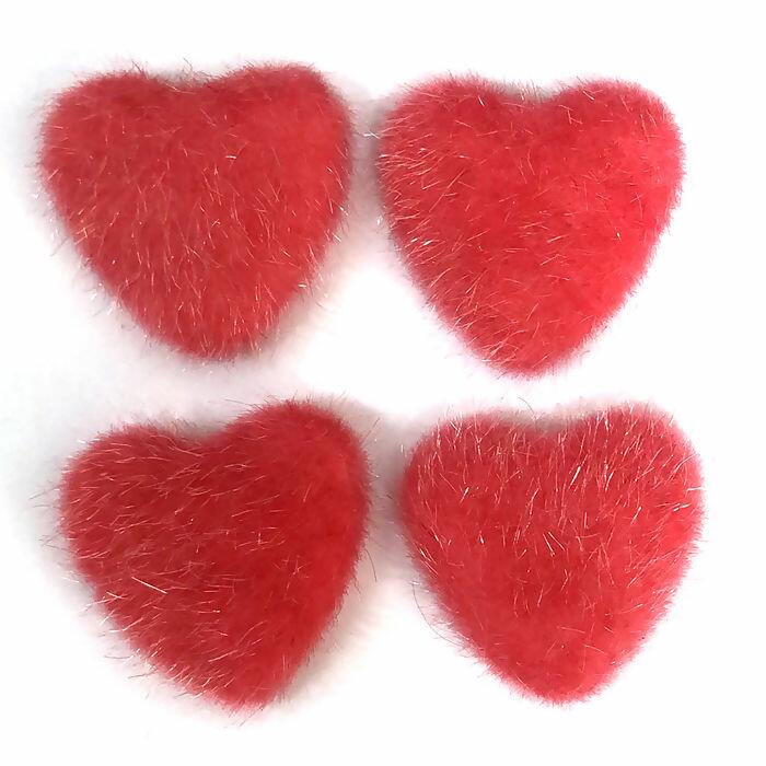 Descrição Aplique Coração de Pelúcia 25mm Vermelho - 4 Unidades