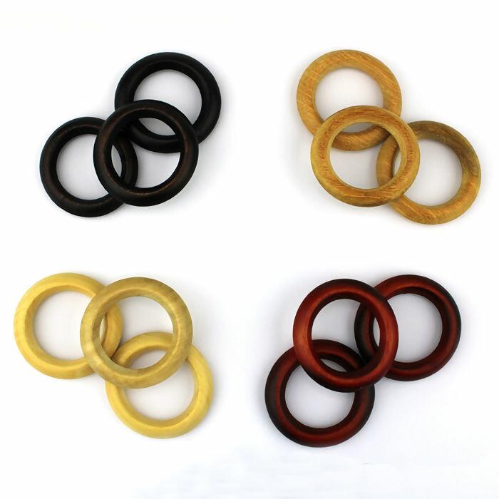 Argolas de madeira ideais para compor a mesa utilizando para segurar guardanapos de tecido. Pode ser usado em cortinas, fabricação de acessórios e artesanatos em geral.
