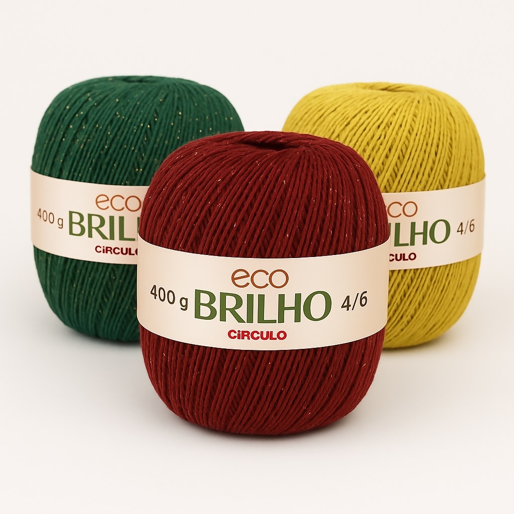 Eco Brilho é um barbante diferenciado, que vai trazer mais sofisticação e agregar valor aos seus designs de decoração. Ele é composto por algodão, outras fibras e, como o próprio nome diz, um toque de brilho proporcionado pela fibra lurex. Ela dá um efeito ponto de luz incrível nas peças. Ideal para a produção, em crochê ou tricô, de tapetes, jogos de banheiro, jogo americano, sousplat, mantas e flores para aplicação. Cartela com 14 cores atemporais e brilho dourado e prata.
