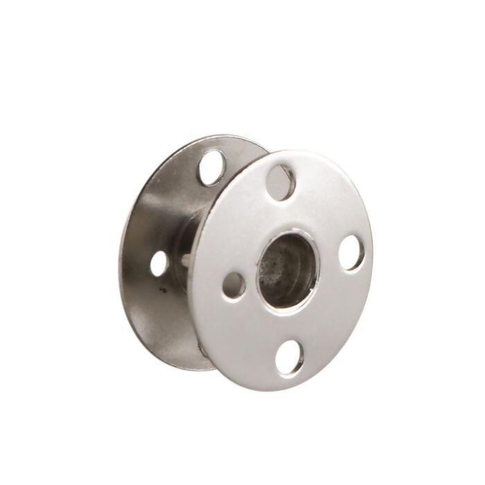 Bobina metálica para linhas, ideal para uso em máquinas de costura domésticas.