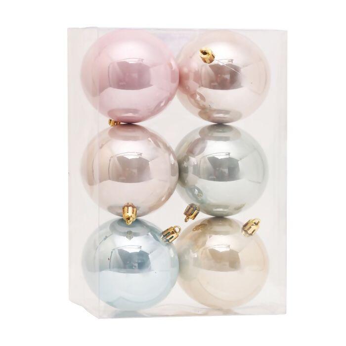 Bola para Árvore de Natal Lisa 8cm Colorido Claro - 6 Unidades