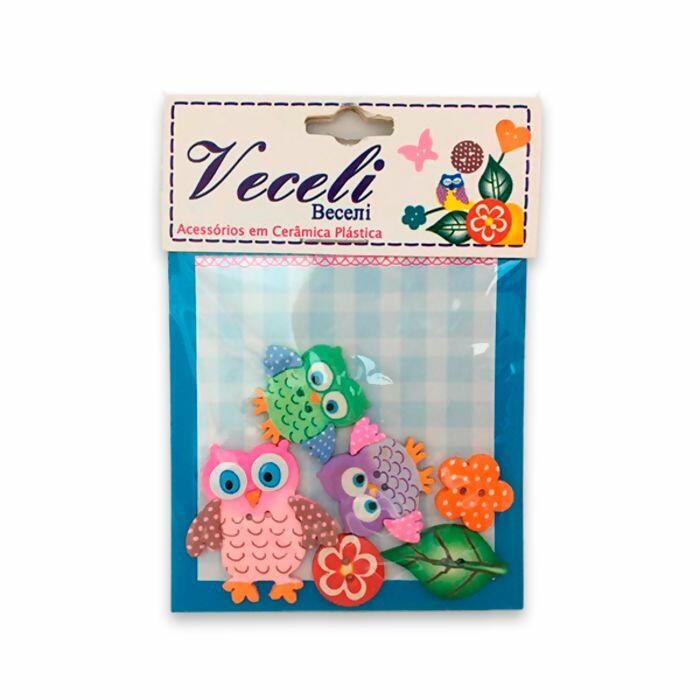 Descrição Botão Cerâmica Plástica Especial Família Coruja