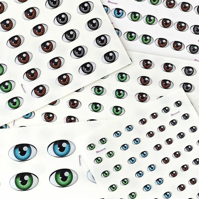 Cartela de adesivos, em material de vinil, a prova d'agua, já recortados e ideal para peças artesanais de EVA, biscuit, papel, tecido e feltro. São olhinhos com uma camada de resina (alto relevo que imita vidro). Cores sortidas.