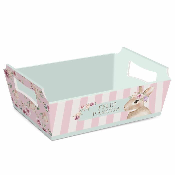 Descrição Cesta Bandeja Coelha Serena 32x24x11 cm Rosa Claro