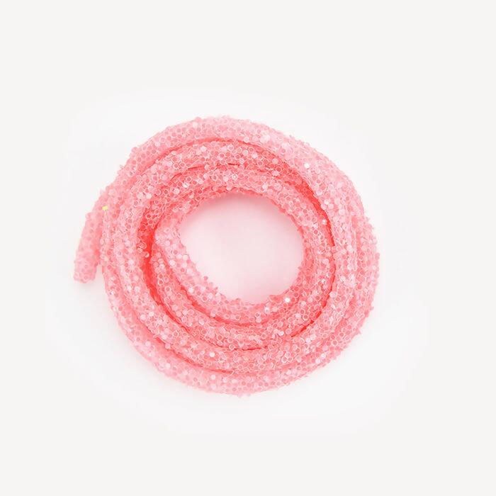 Descrição Cordão de PVC Fluorescente Rosa com Glitter - 1 Metro