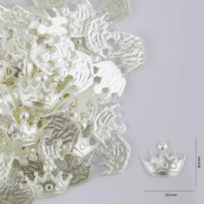 Confeccionado em material resistente, durável, leve e com furo passante, as coroas peroladas ABS são versáteis podendo ser utilizadas em bordados de tiaras, roupas, bijuterias, chinelos e aplicações em peças artesanais.