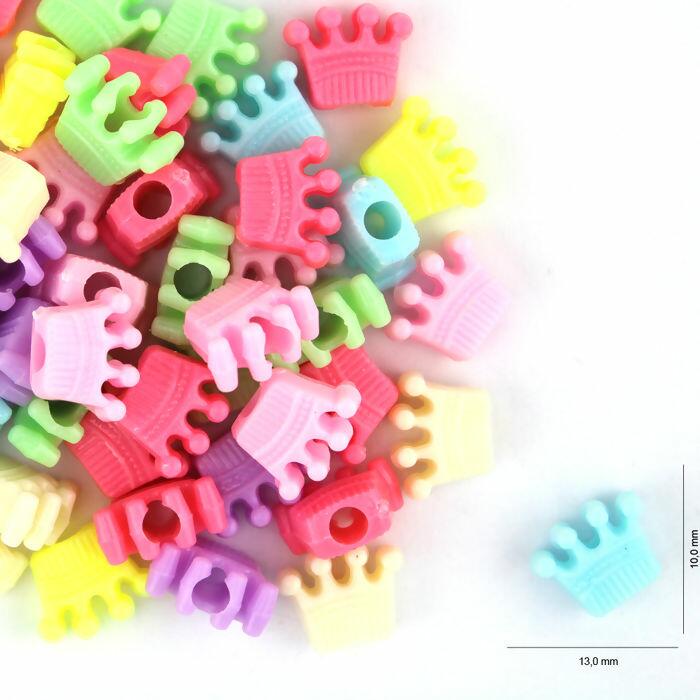 Encha seus trabalhos de cor e charme com coroas coloridas de 10mm x 13mm e furo passante. Você pode confeccionar e customizar pulseiras e colares infantis, bolsas, chaveiros, artesanatos e decorações.