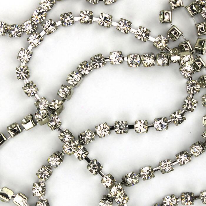Corrente de strass cristal com prata, ideal para personalizar e customizar chinelos, roupas, bolsas, bijuterias e artesanatos em geral.