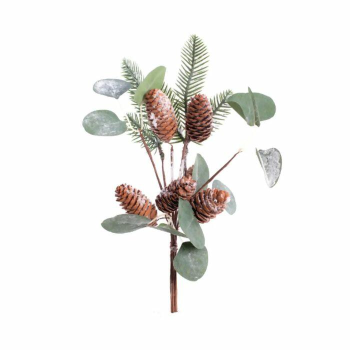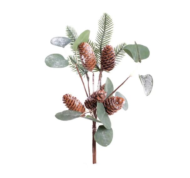 Descrição Enfeite De Natal Galho Pinheiro com Pinhas Nevado