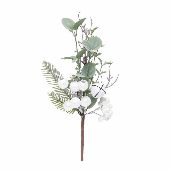 Enfeite Natalino Galho Folhas, Frutas e Guizo Branco/Verde