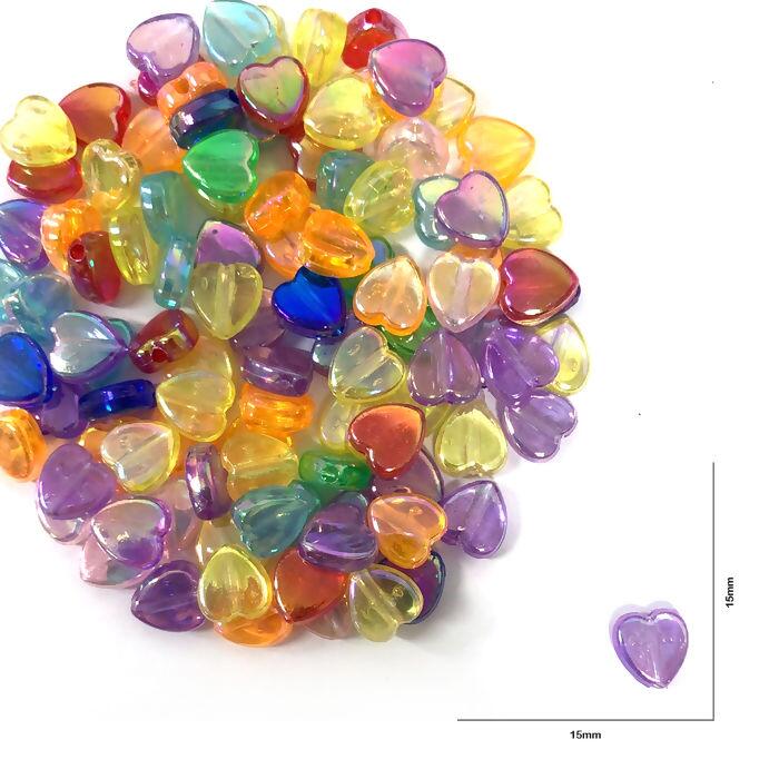 Entremeio em formato de coração Transparente colorido com 15 mm , ideais para confecção e customização de pulseiras, bijuterias e outros acessórios.