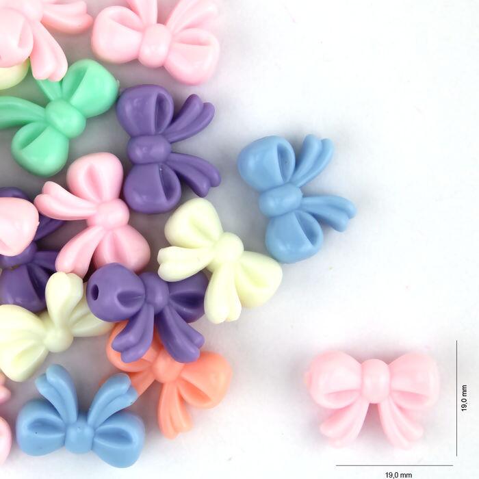 Produzido em plástico, os entremeios de laços coloridos no tom pastel são ideais para confecção e customização em bijuterias, chaveiros, lembrancinhas, decorações e artesanatos em geral.