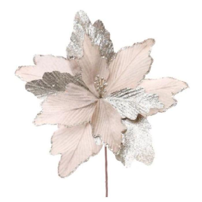 Flor de Natal Decorativa Poinsétia Glitter Chá - Unidade