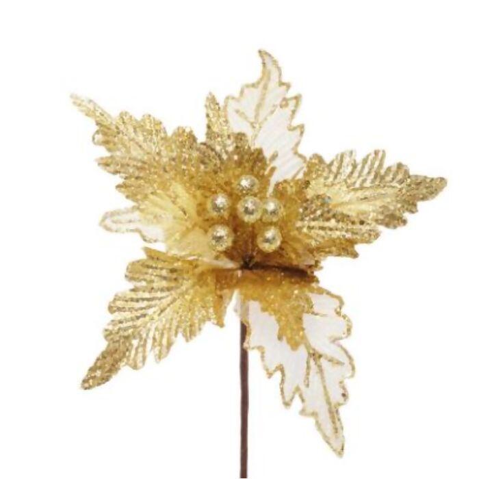 Flor de Natal Poinsétia Cabo Curto Dourada