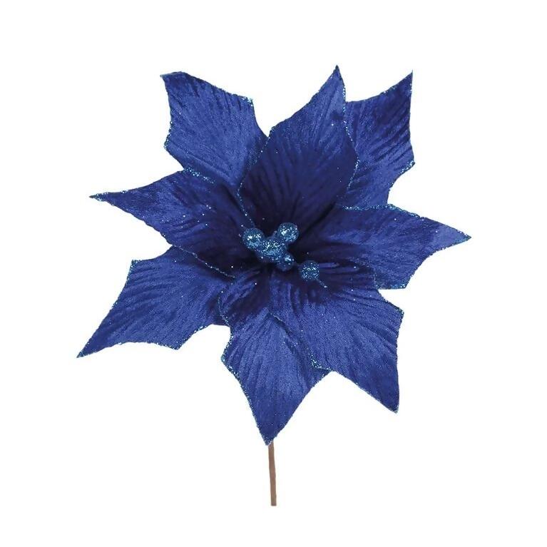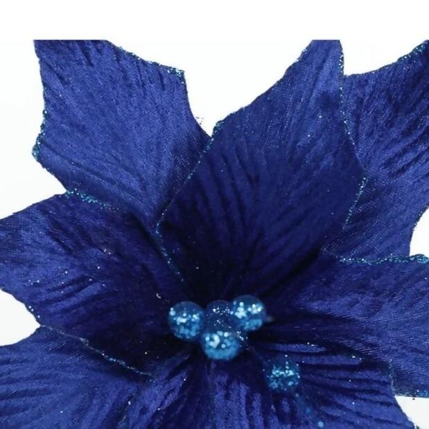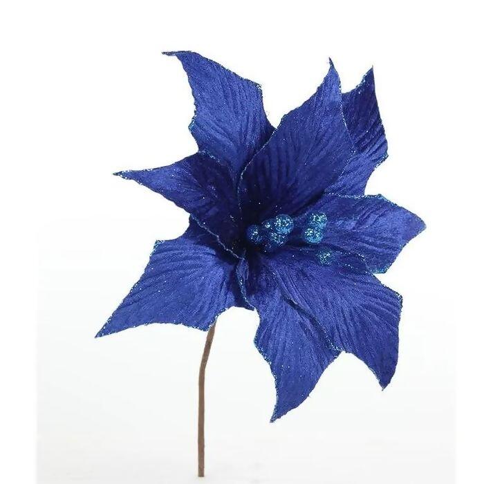 Flor Decorativa Poinsetia 33,5cm Azul Glitter