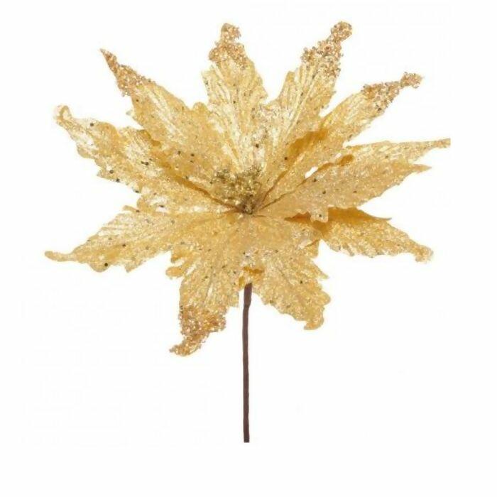 Flor Decorativa Poinsétia Cabo Médio Ouro