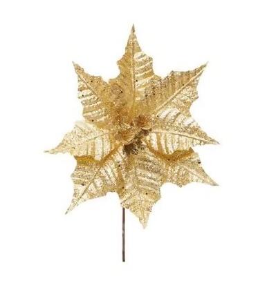 Flor Decorativa Poinsétia Cabo Médio Ouro