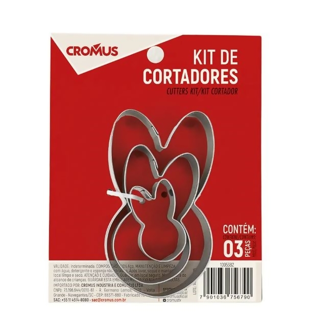 Descrição Kit Cortadores Cabeça de Coelho 3 Unidades