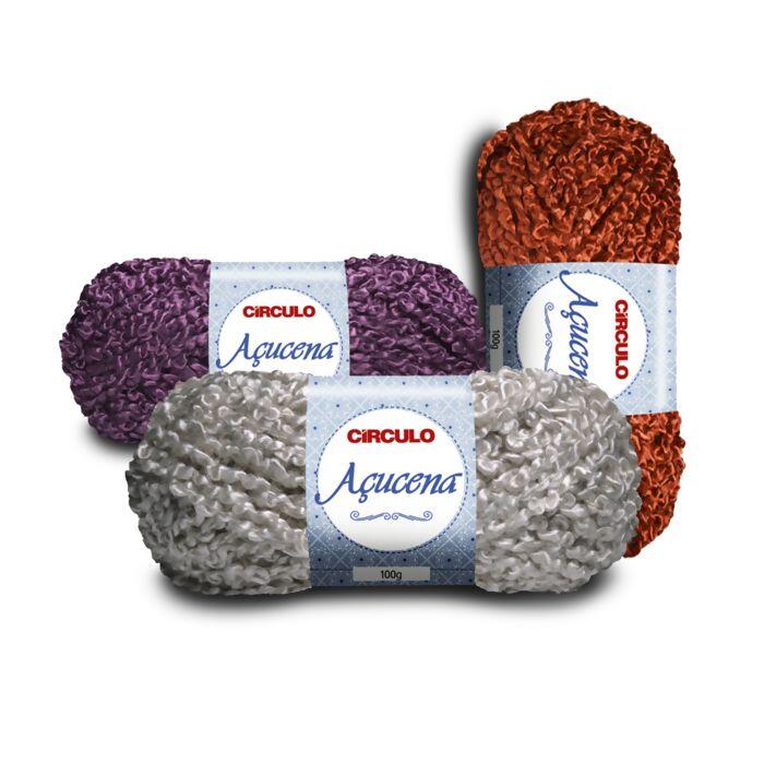 Açucena é um fio Bouclé muito usado para confecção de peças de moda e também para cabelos de boneca. Os fios Bouclés são compostos de pequenos anéis ou alças em intervalos regulares, mais ou menos próximos.