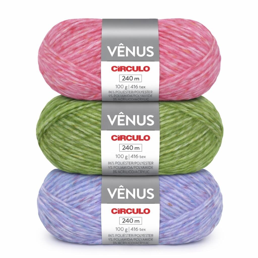 Apaixone-se pelo toque macio e delicado de Vênus, um fio de textura peludinha perfeito para produzir peças aconchegantes que aquecem. Ele é composto por um blend de fibras recicladas, poliéster, poliamida e acrílico, que o tornam superexclusivo e com efeito único. Pode ser usado para moda e decoração outono-inverno. O vestuário confeccionado com Vênus tem excelente caimento.