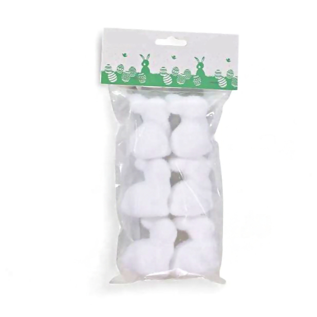Mini Coelho Flocado Branco 5cm 6 Unidades