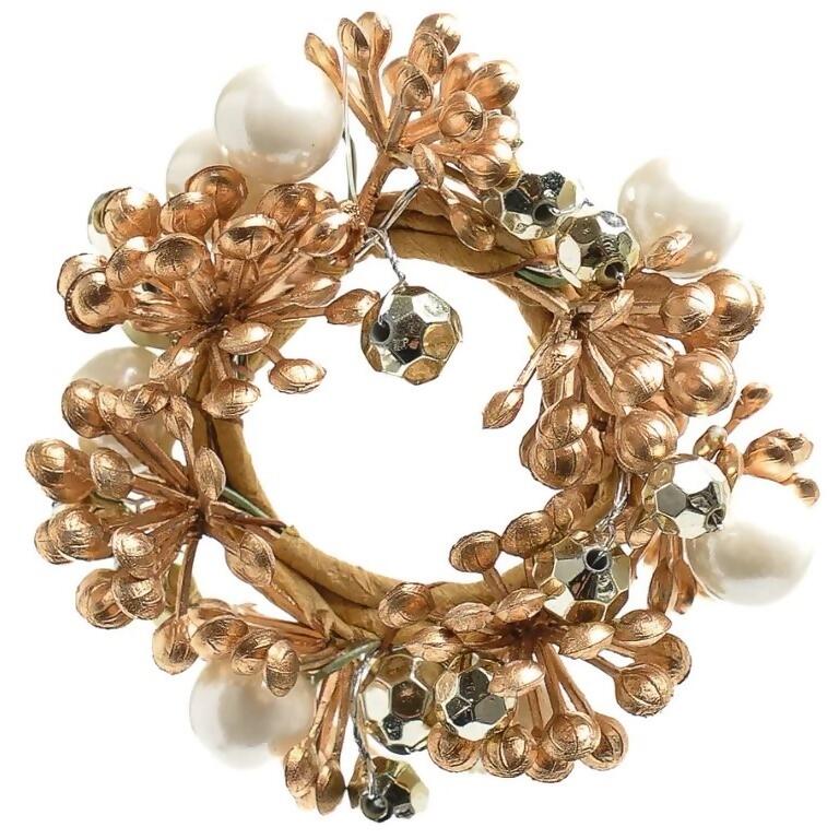 Descrição Mini Guirlanda Bolas e Pérolas Ouro 7cm