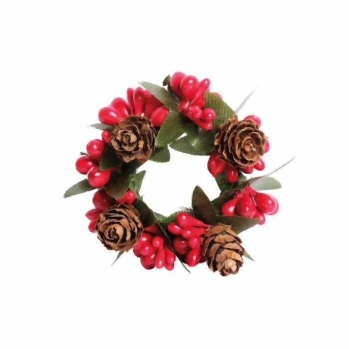 Mini Guirlanda com Pinha Vermelho Verde e Marrom