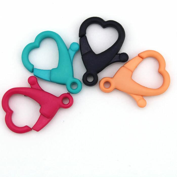 Descrição Mosquetão de Plástico Coração Colorido 30mm x 25mm 4 Unidades