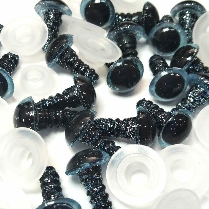 Descrição Olho Redondo Com Trava Para Amigurumi - 20und - Azul Glitter