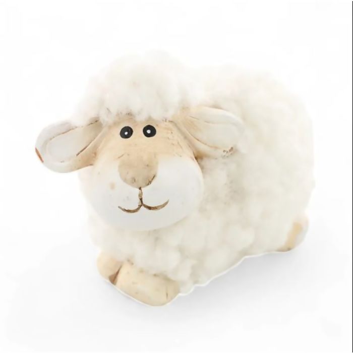 Descrição Ovelha de Lã Bege e Branco 7cm