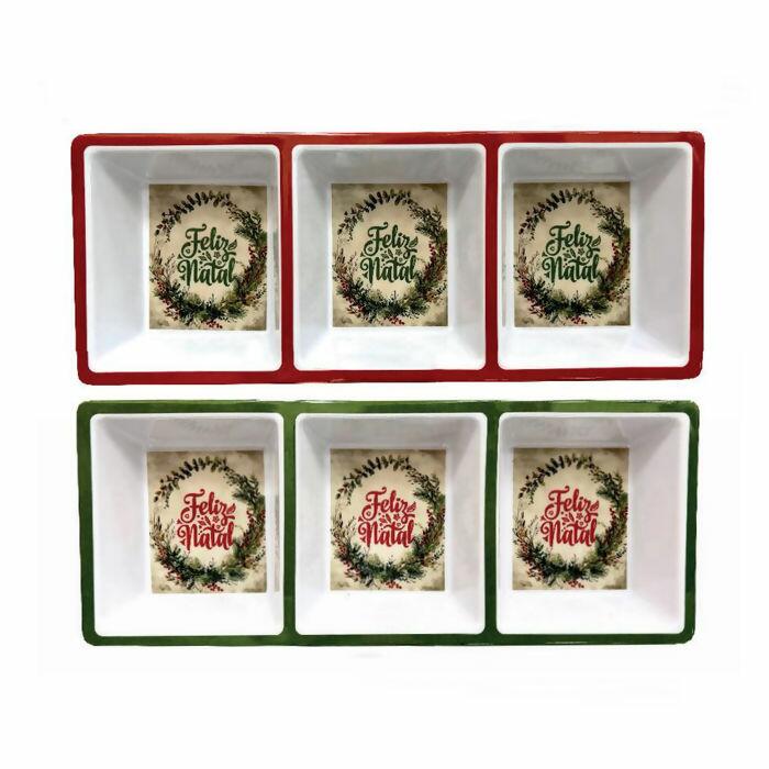 Petisqueira Trio Guirlanda 35,5c15cm Verde ou Vermelho