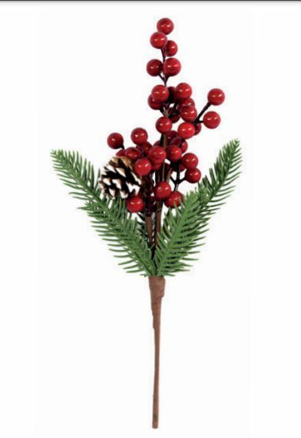 Descrição Pick Natalino Azevinhos e Folhas 32cm