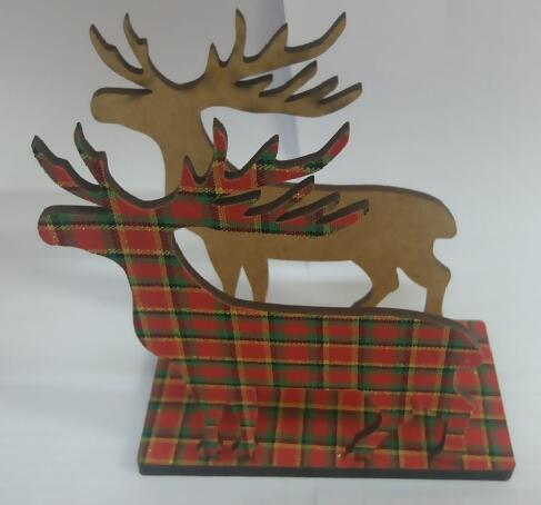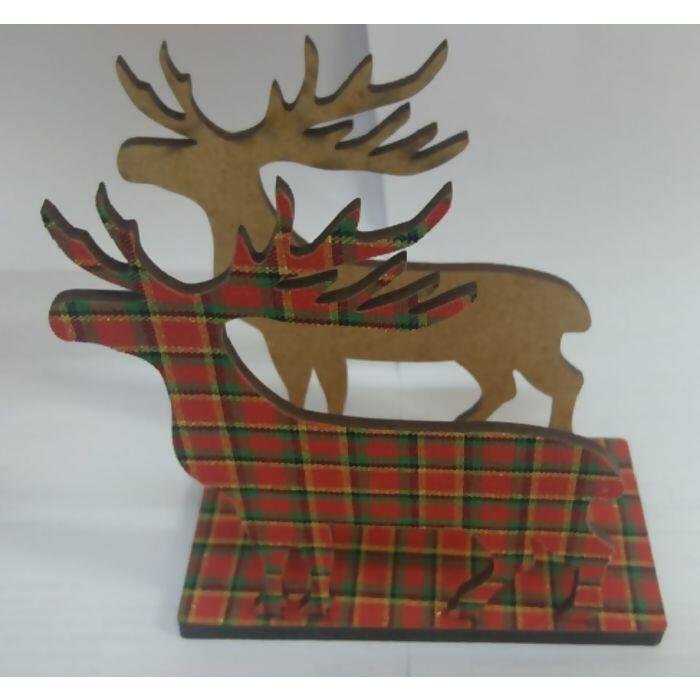 Descrição Porta Guardanapo de Natal Rena com Pé Reto Xadrez Dourado