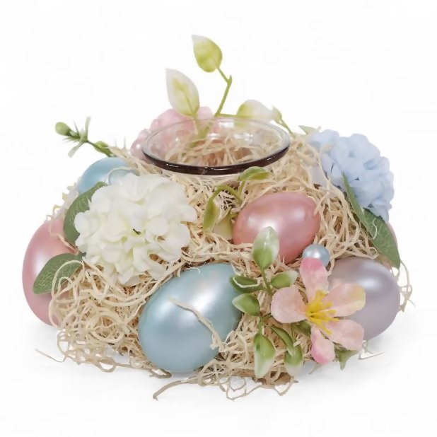 Porta Velas Páscoa Ninho e Ovos 9cm