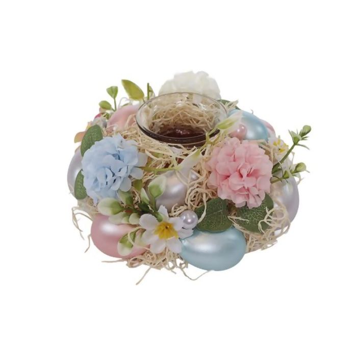 Descrição Porta Velas Páscoa Ninho e Ovos 9cm