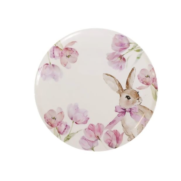 Prato Melanina Coelho Branco e Flor Lilás 25cm