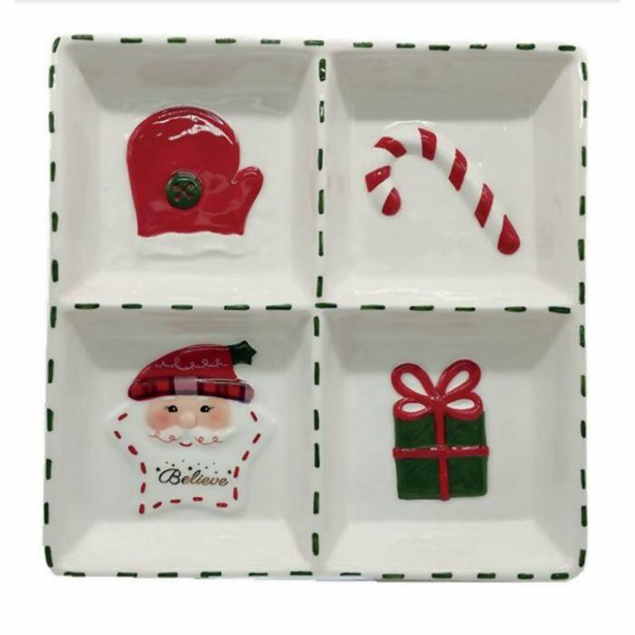 Descrição Prato Porcelana 4 Divosórias Papai Noel 20x20x3,5cm