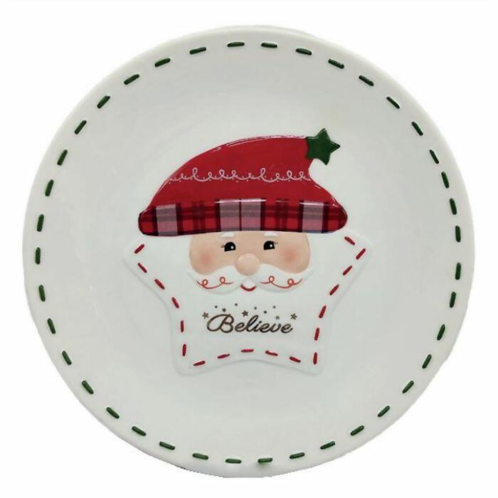 Descrição Prato Porcelana Estrela Papai Noel 22x22x2cm