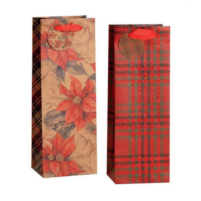 Sacola de Papel Natalina Para Vinho 37x10x15cm Xadrez ou Floral