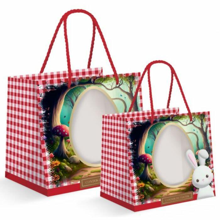Sacola de Papel Premium Contos de Páscoa com Visor M