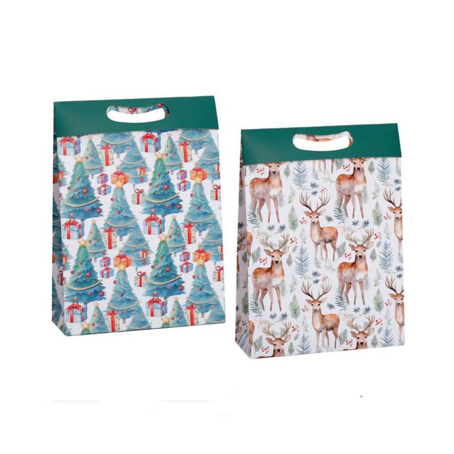 Sacola de Papel Rena e Árvore de Natal 28x10x38,5cm