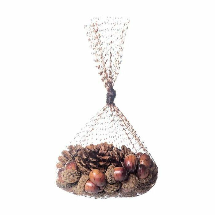 Descrição Saquinho com Pinhas Decorativas Rústica Marrom 200g