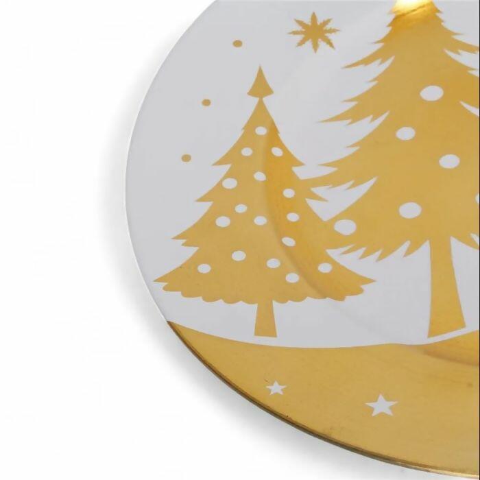 Descrição Sousplat Casa e Árvores Branco e Ouro