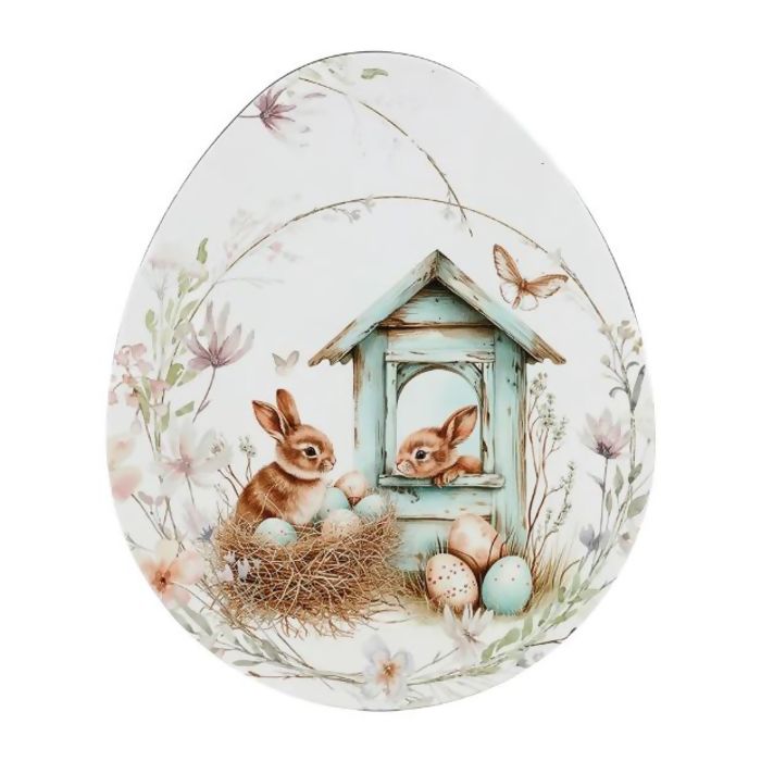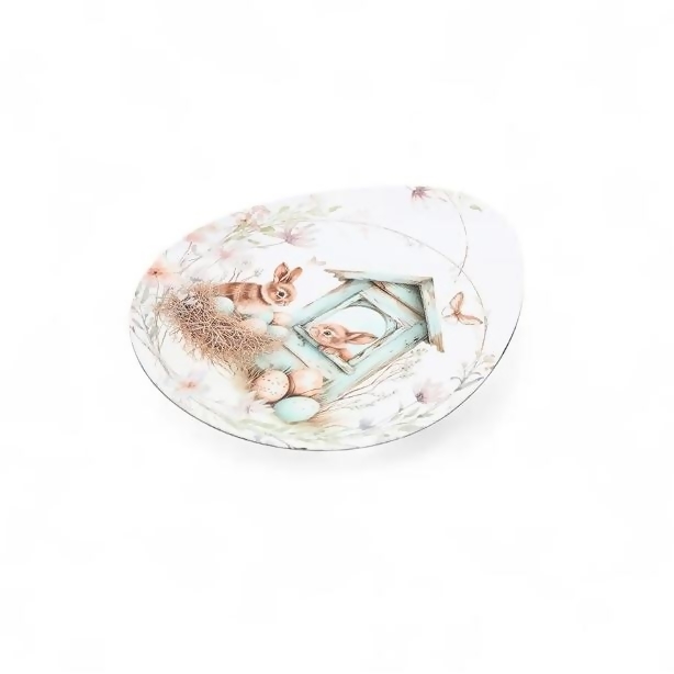 Descrição Sousplat Oval Coelhos e Casinha 35x29cm