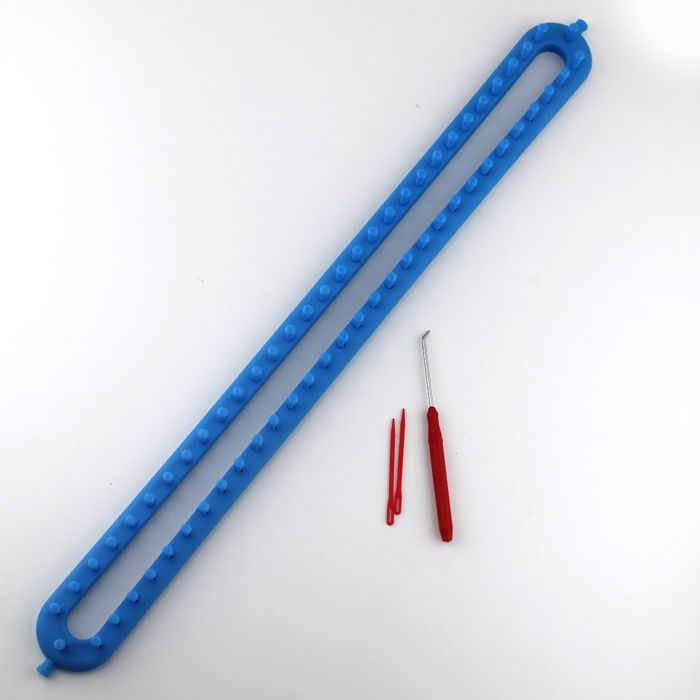 Tear de plástico para crochê manual com 30 pinos para confecção de peças tubulares e sem emendas como meias, cachecóis e toucas.