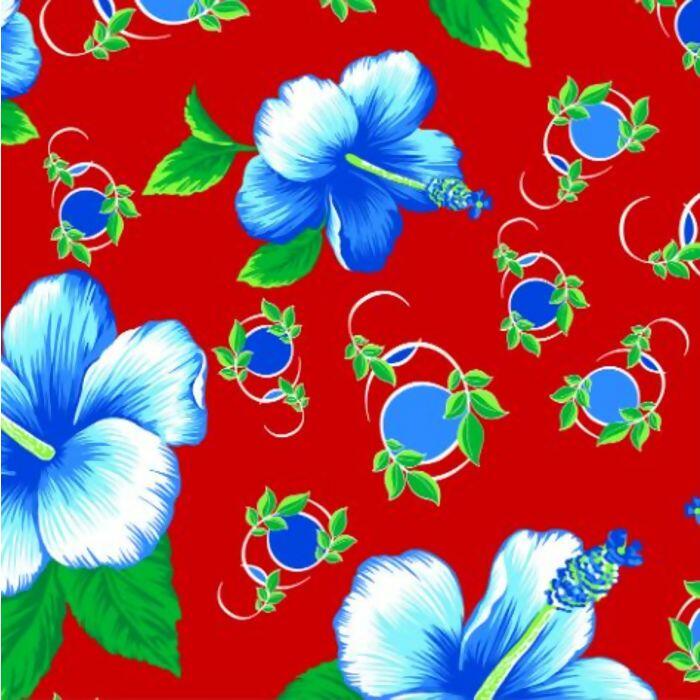 Tecido Chita 2821 V.1 Floral Azul Fundo Vermelho