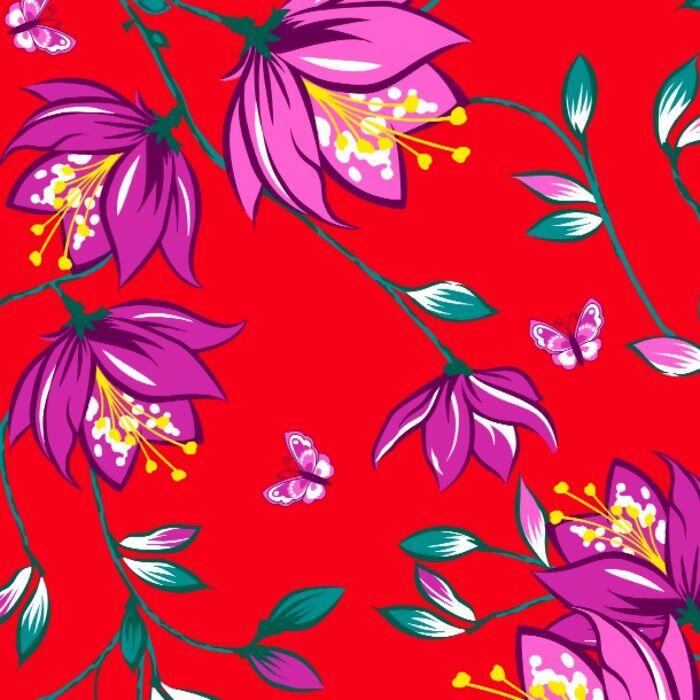 Tecido Chita 3015 V.1 Flores Fundo Vermelho